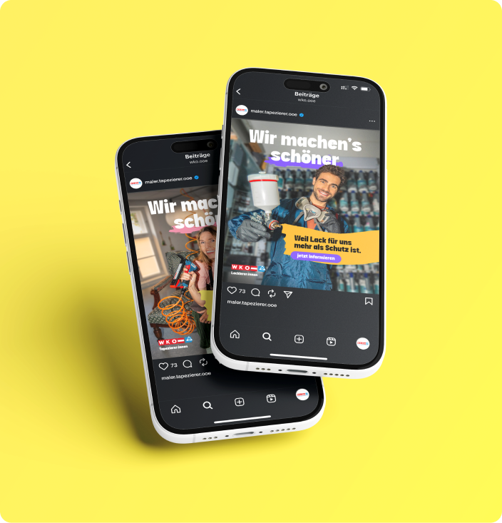 Mit der Kampagne „Wir machen’s schöner“ rücken wir die Maler:innen & Beschichtungstechniker:innen, Tapezierer:innen, Lackierer:innen sowie Beschriftungsdesigner:innen & Werbetechniker:innen Oberösterreichs ins Spotlight.